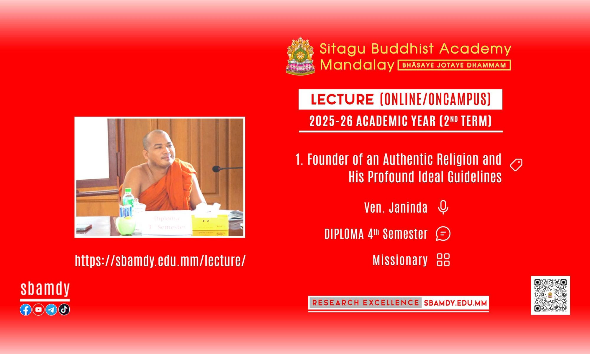 | DIPLOMA 4th Semester | Missionary | Ven. Janinda | Founder of an Authentic Religion and His Profound Ideal Guidelines |