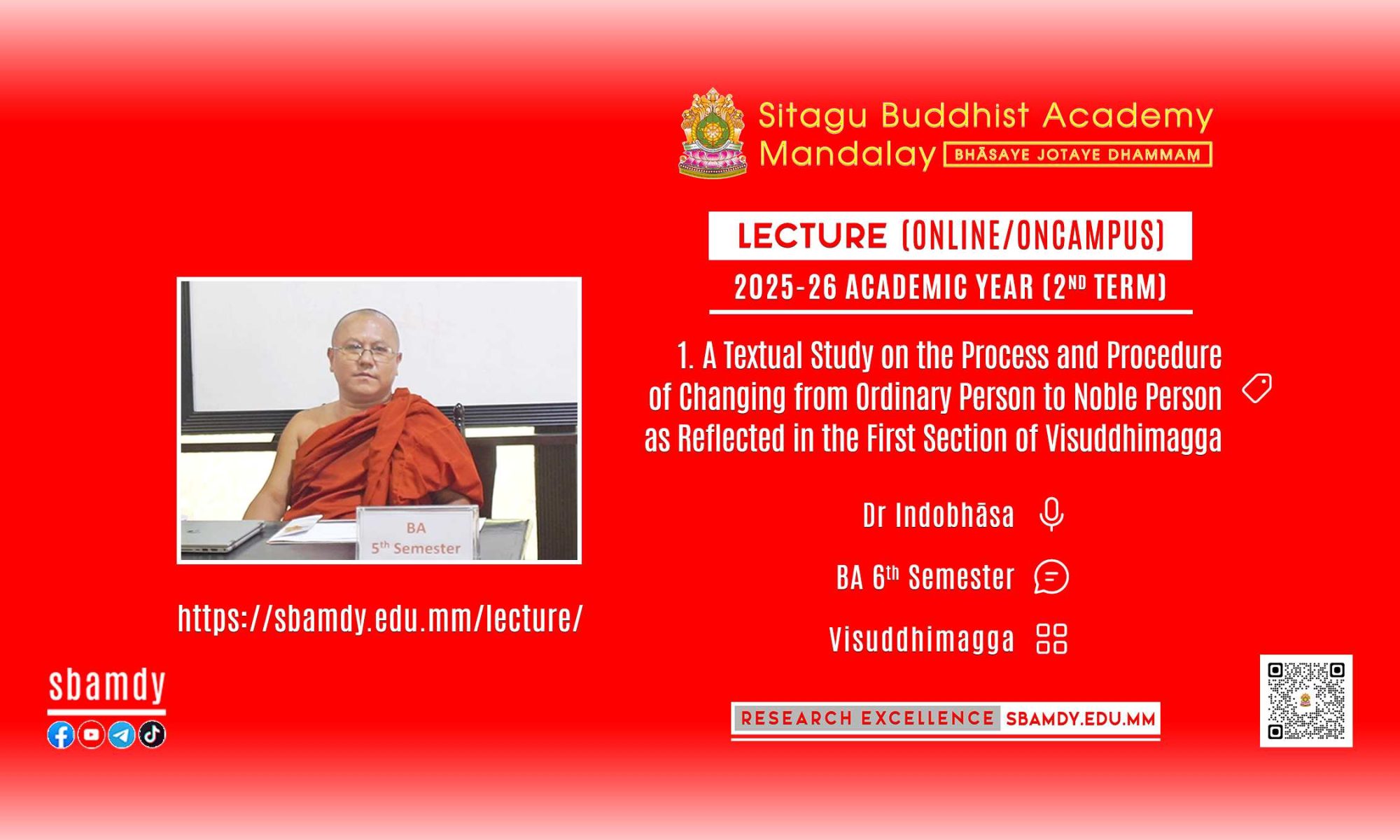 | BA 6th Semester | Visuddhimagga | Dr Indobhāsa | A Textual Study on the Process and Procedure of Changing from Ordinary Person to Noble Person as Reflected in the Section of the First Path in Visuddhimagga Commentary |