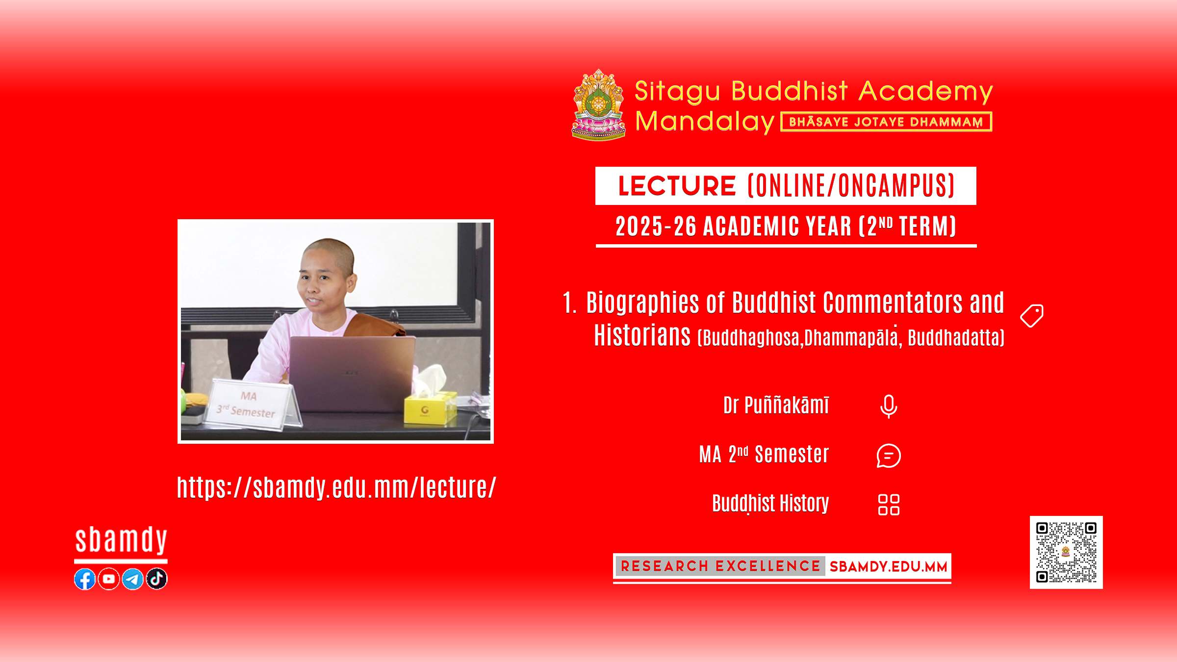 General Buddhist Studies History Philosophy Religions Social Science Missionary ICT Latest News SBAM 25-26/2 Lecture – 2MB – His admin January 10, 2026 Read More SBAM 25-26/2 Lecture – 2MB – His admin January 1, 2026 Read More SBAM 25-26/2 Lecture – 4BB – Rel admin December 26, 2025 Read More SBAM 25-26/2 Lecture – 6BB – His admin December 25, 2025 Read More SBAM 25-26/2 Lecture – 2MB – Phi admin December 5, 2025 Read More SBAM 25-26/2 Lecture – 4BB – His admin November 27, 2025 Read More SBAM 25-26/1 Lecture – MA Course admin September 6, 2025 Read More SBAM 25-26/1 Lecture – MA Course admin September 5, 2025 Read More SBAM 25-26/1 Lecture – Diploma Course admin September 3, 2025 Read More SBAM 25-26/1 Lecture – MA Course admin September 3, 2025 Read More SBAM 25-26/1 Lecture – BA Course admin August 13, 2025 Read More SBAM 25-26/1 Lecture – MA Course admin July 31, 2025 Read More 12 12